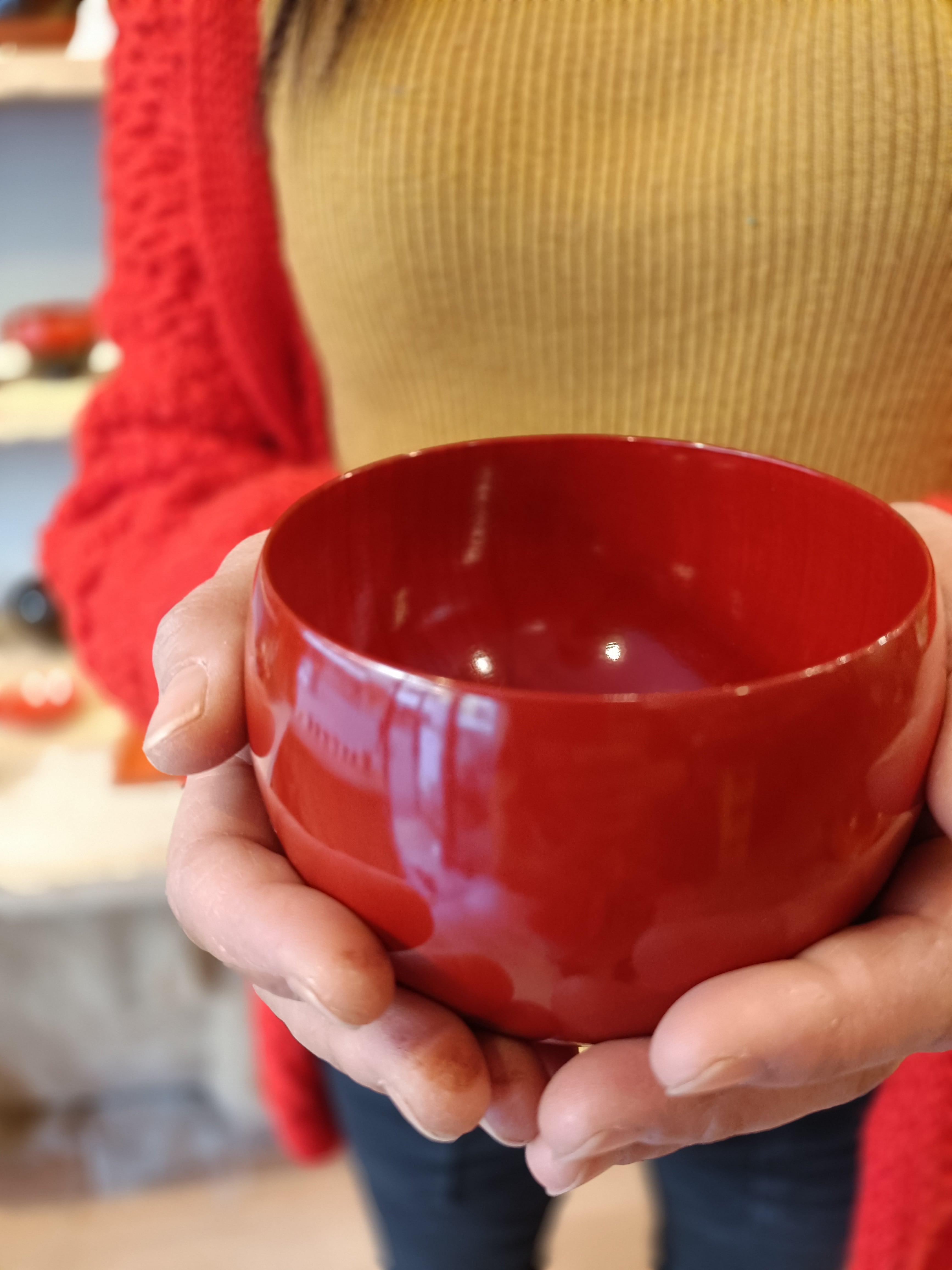 漆は熱いものを入れても外側に熱が伝わりづらいので 中のものの温度を保ちます。